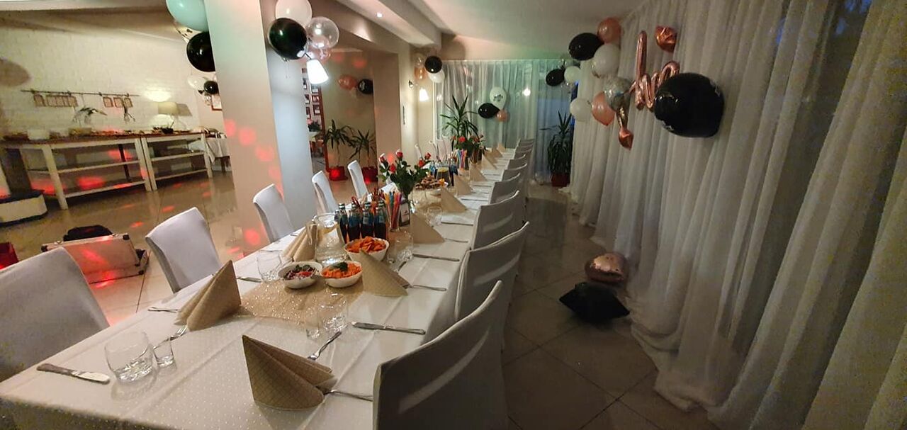 Przed hotelem znajduje się darmowy parking dla gości. Nie czekaj dłużej, aby zaplanować swoją podróż i zarezerwuj pokój u nas już dziś. Nawet jeśli nie planujesz rezerwować noclegu zapraszamy do naszej restauracji, w której można zarezerwować sobie stolik i skosztować pysznego domowego posiłku. Czekamy na ciebie. Akceptujemy zbliżeniową płatność, kartę MasterCard oraz kartę VISA. Dodatkowo zawsze można oczywiście zapłacić gotówką. Czy chciałbyś zaserwować nasze przysmaki na prywatnej imprezie okolicznościowej? Zamów nasz serwis cateringowy. Obsługujemy ponadto prywatne uroczystości. Celem uzyskania dalszych informacji i rezerwacji prosimy o kontakt. Z przyjemnością zorganizujemy Twoje przyjęcie weselne. Specjalizujemy się w prywatnych uroczystościach i zrobimy wszystko, aby Twój wielki dzień stał się dla ciebie niezapomniany. Możesz nas odwiedzić codziennie od godziny 08.00 do 20.00.